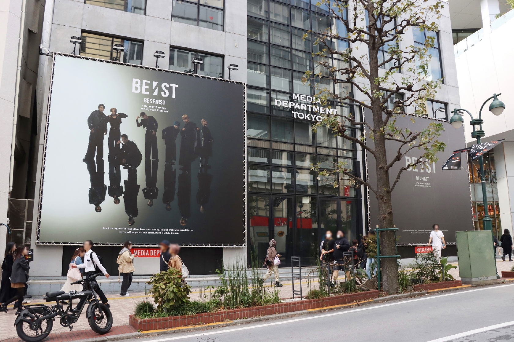 BE:FIRSTのベストアルバム「BE:ST」の特大ビジュアルが、東京・渋谷の話題スポット「MEDIA DEPARTMENT TOKYO」に登場