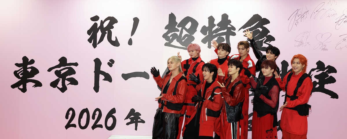 男性9人組「超特急」が21日、全国アリーナツアーの最終公演を東京・国立代々木競技場第1体育館で行った。終盤に、11月25日に初の東京ドーム公演を開催することを発表。結成15年の節目で迎える夢舞台に向けて、リーダーで、3号車のリョウガは「8号車(ファンの総称)というメンバーを含めて『超特急』に金メダル!」と、ミラノ・コルティナ冬季五輪にかけて喜びをかみしめた。