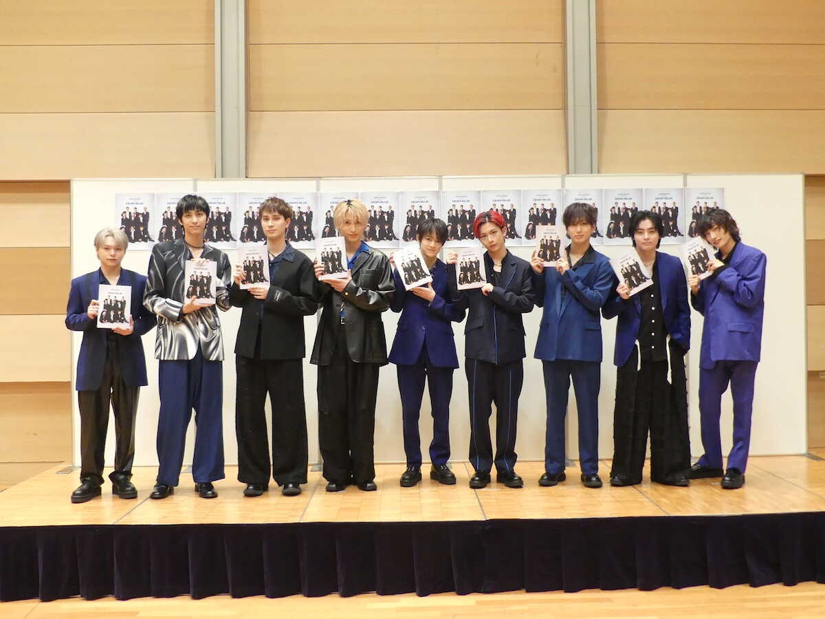 結成10周年記念写真集の発売記念イベントを行ったSUPER★DRAGONの(左から)志村玲於、古川毅、ジャン海渡、飯島颯、伊藤壮吾、田中洸希、池田彪馬、松村和哉、柴崎楽
