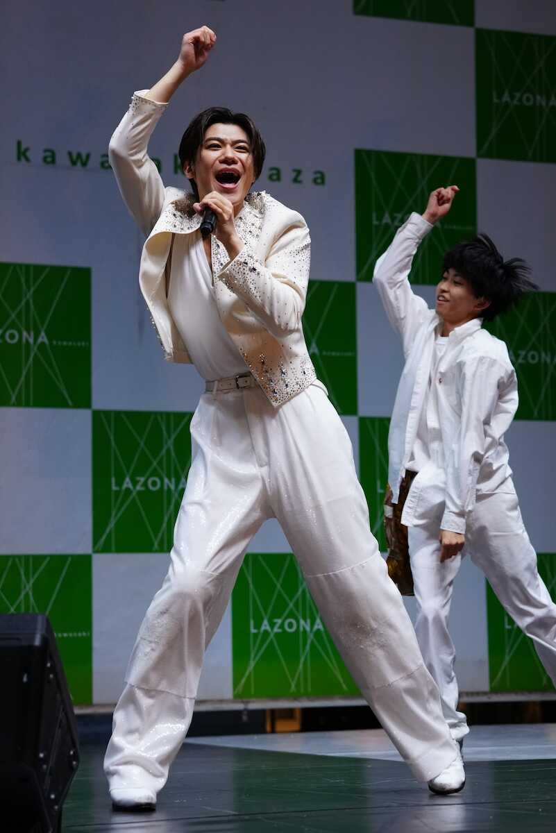 <新浜レオンイベント>歌い踊る新浜レオン(撮影・島崎忠彦)