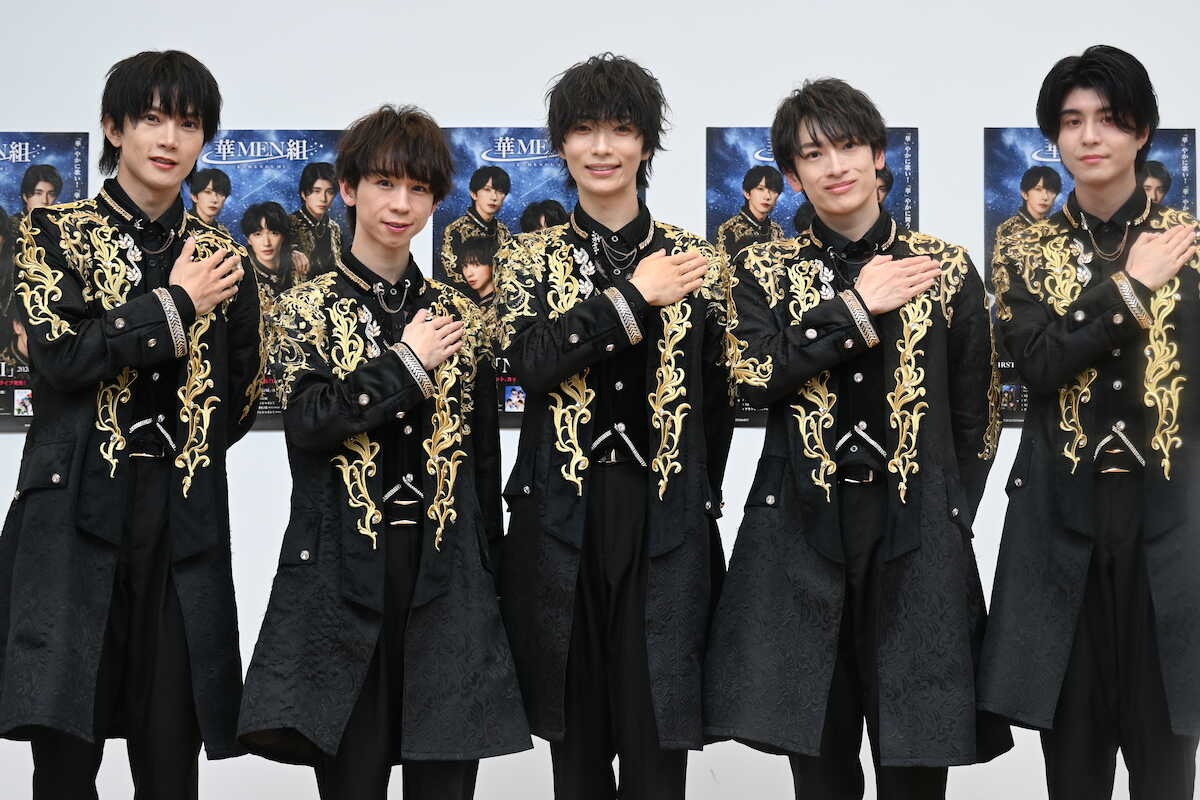 男性5人組の歌謡アイドル「華MEN組」による初シングル「NEGAI」が25日、発売された。この日、東京・錦糸町のマルイ店頭特設ステージでリリースイベントを行った。
