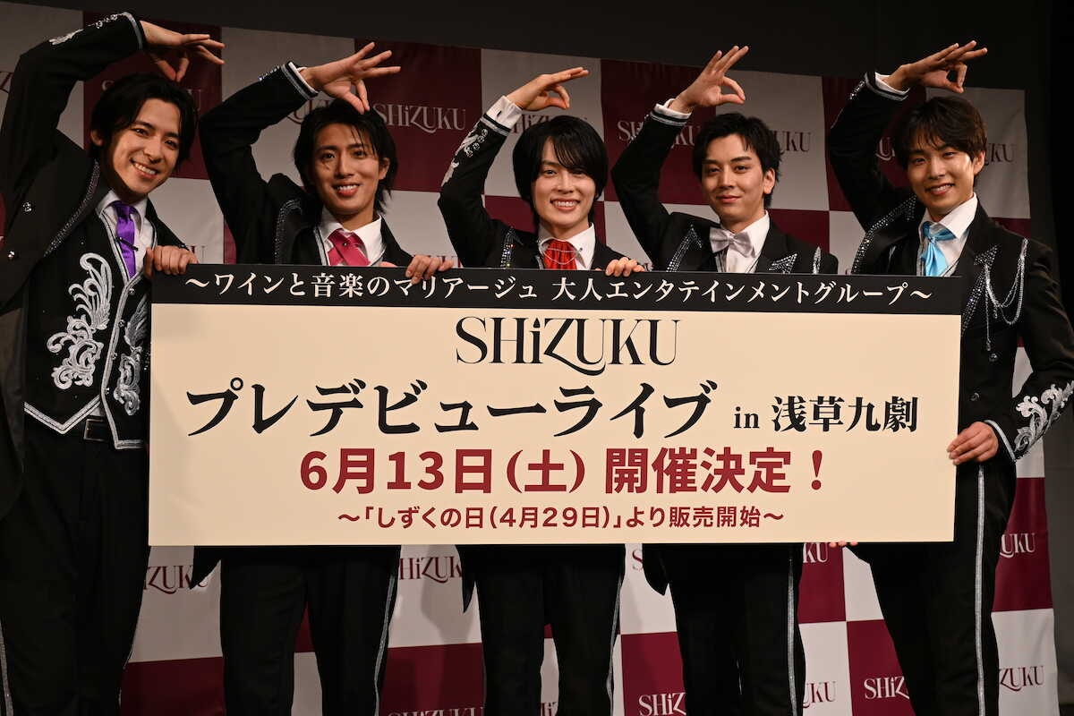 芸能事務所「レプロエンタテインメント」と「つばさレコーズ」による、ワインをテーマとした男性5人組「SHiZUKU」が20日、東京・浅草九劇でお披露目された。