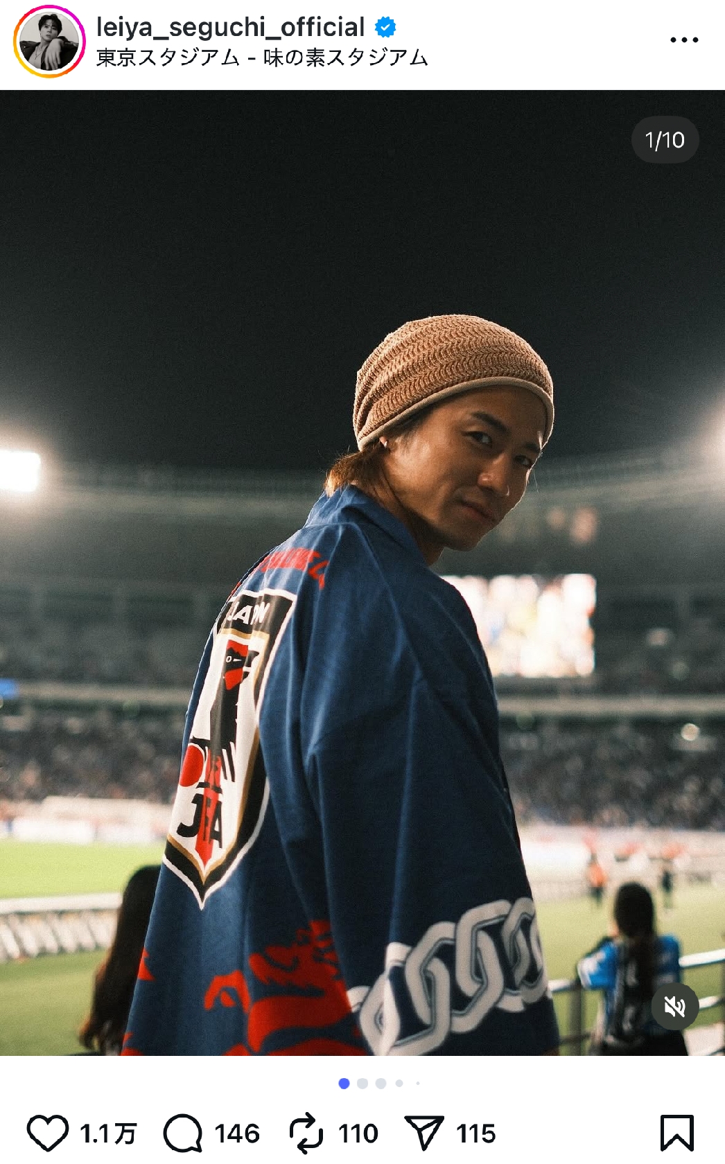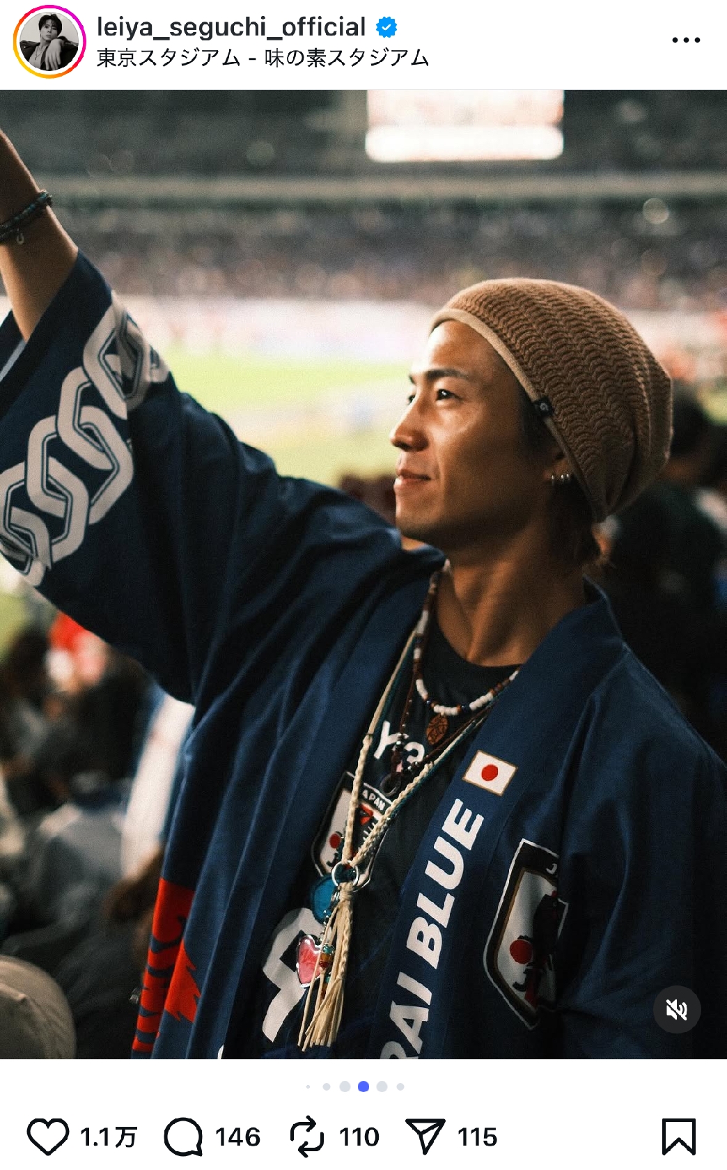 また、中島が会場で撮影した自身の写真もアップし「…颯太の撮る写真すげー、!! #祭り男児 ブラジル戦の熱狂の僕らの様子はまた投稿します!笑 ハンパねえー!!」と熱気を伝えた。