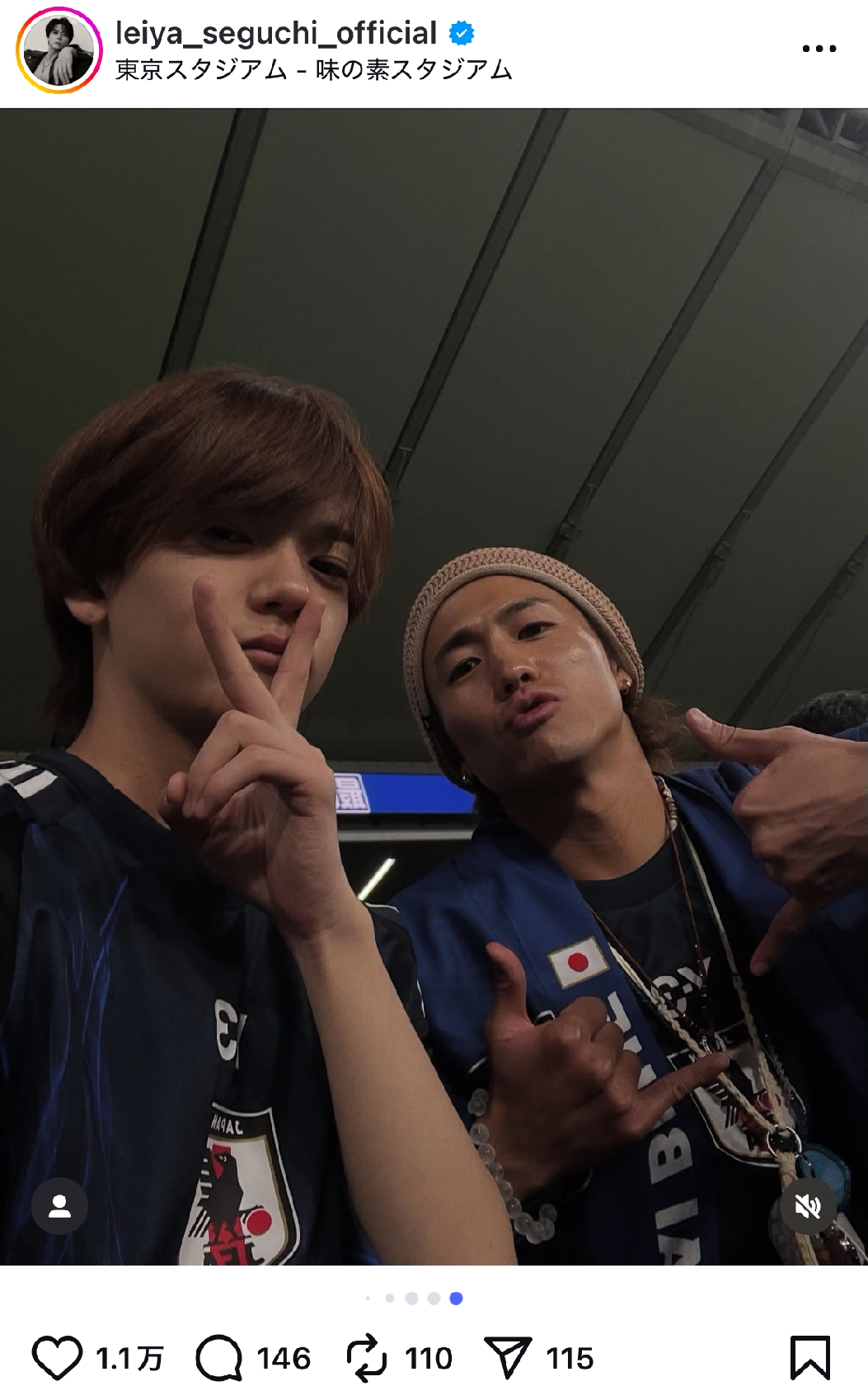 FANTASTICS 中島颯太「うぉーーー!サッカー最高」「日本代表最高」 歴史的瞬間、瀬口黎弥と現地で見届けた興奮冷めやらず
