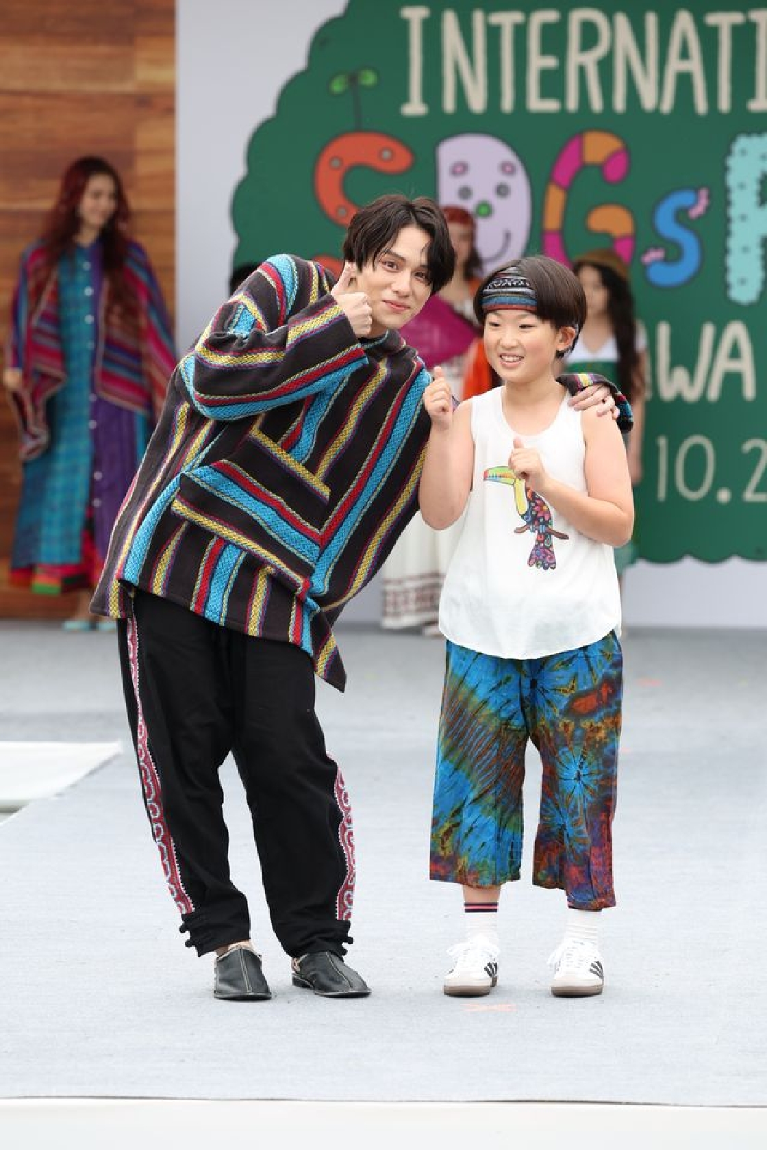 SDGsの普及、促進をテーマにTGCがプロデュースした同イベント。ファッションショー「With Other Culture And Cities」に登場した山下は、着用した衣装について「色合い、柄、質感が着る人と服の魅力を髙めているし、国の文化や物語がひしひしと伝わってくるなと感じました」と満足げ。