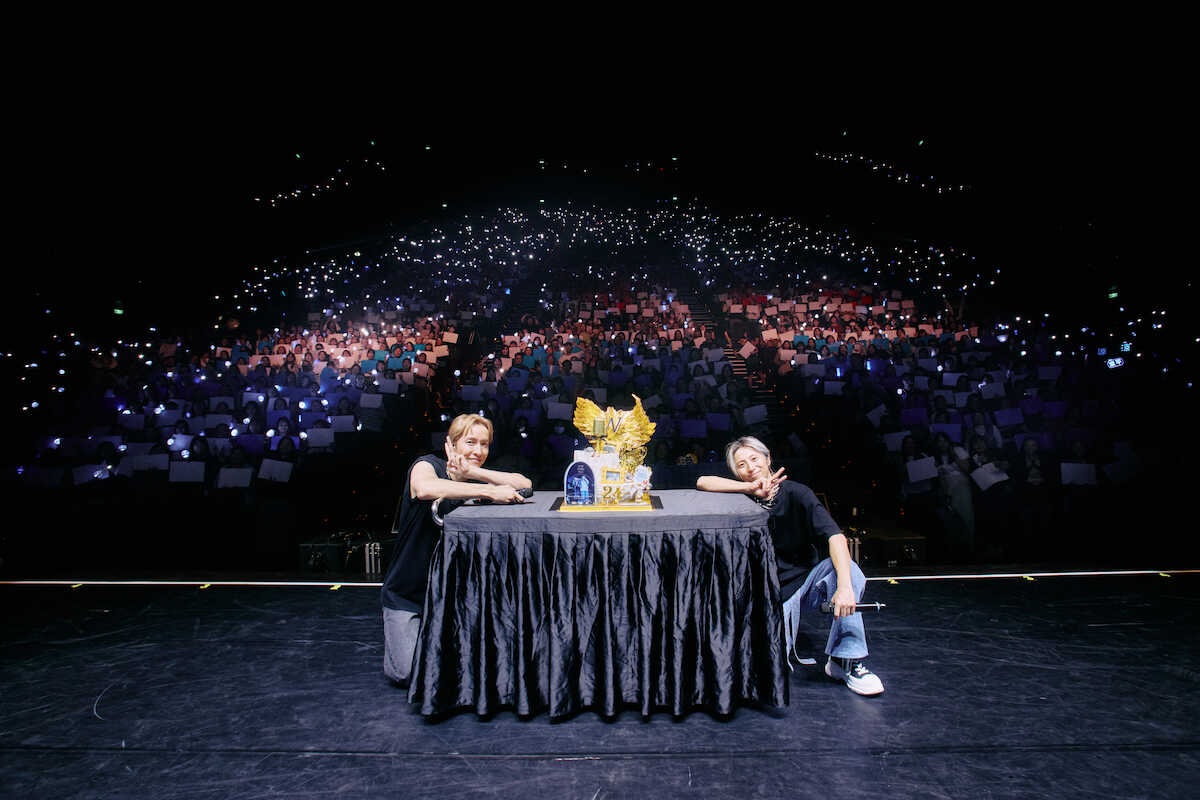 3カ月後にはデビュー25年目に突入する。「日本と同じようにアジアの人たちが応援してくれたおかげで羽ばたけた」と橘。アンコールでは2人の誕生日、橘の12月16日、千葉の11月18日を共に祝う「R♡K HBD」の人文字とケーキが現地のファンから贈られた。橘は「必ずライブで戻って来られるように活動する」と約束。勇気をくれた声援と感謝を胸に節目に向けて飛び立った。(高原 俊太)