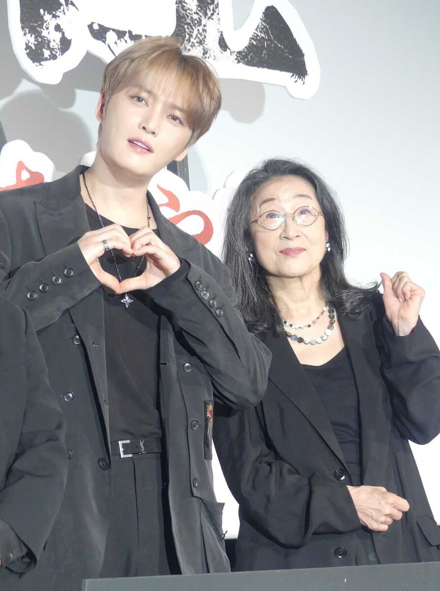 主演映画の舞台あいさつを行ったジェジュン(写真左)と共演した木野花