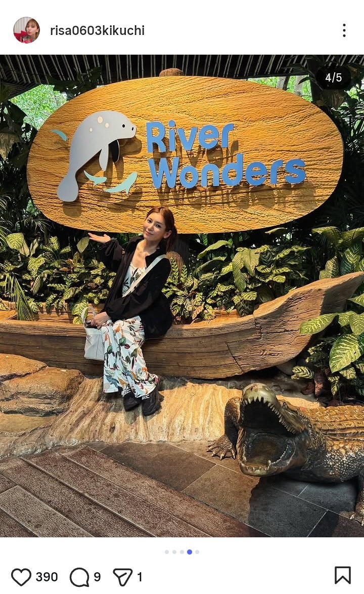 元TOKIOの城島茂の妻でタレントの菊池梨沙が8日までに自身のインスタグラムを更新。家族旅行の思い出ショットを披露した。