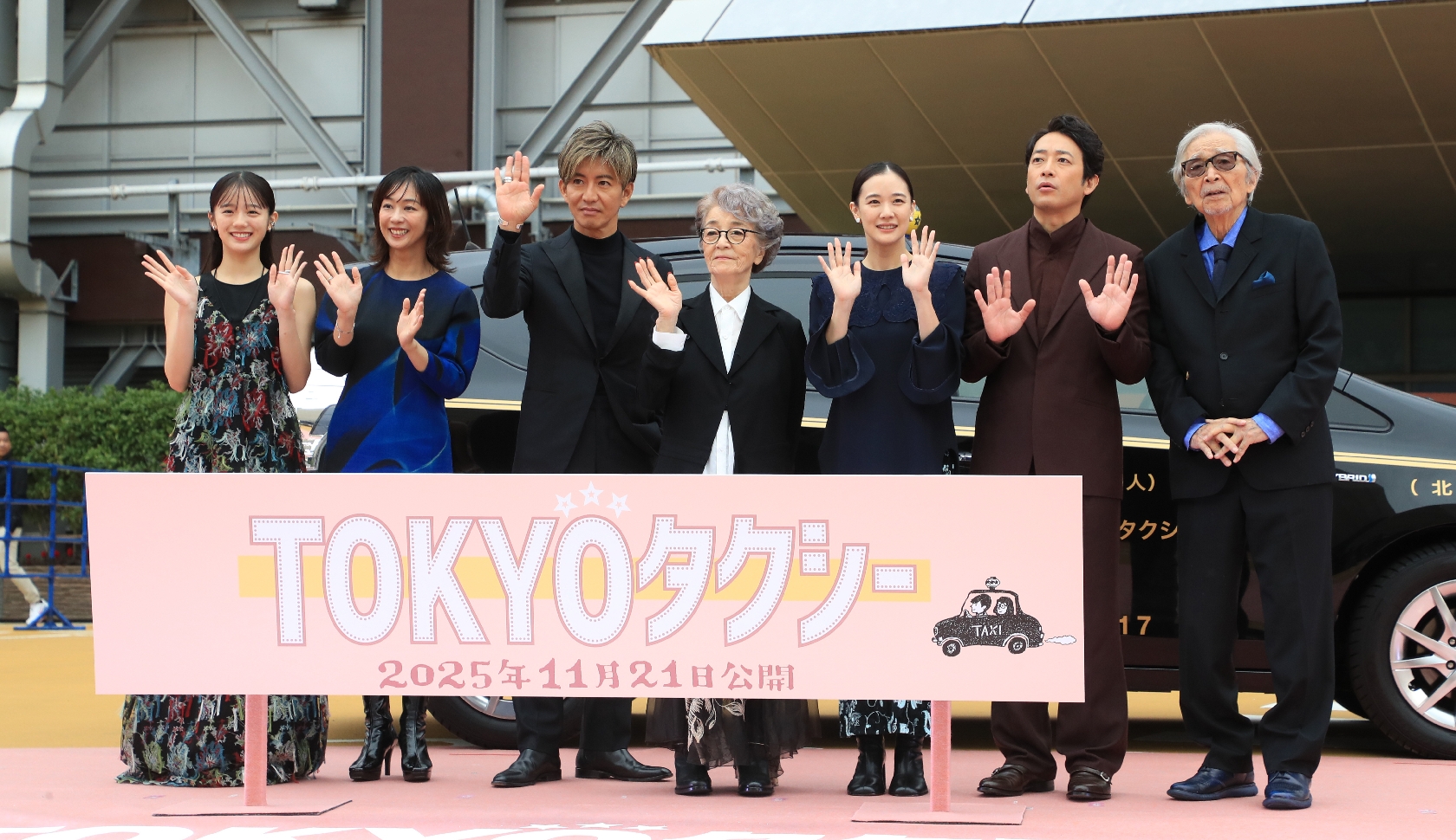 女優の倍賞千恵子と俳優の木村拓哉が20日、東京タワーで映画「TOKYOタクシー」(監督山田洋次、11月21日公開)のタクシーセレモニーを行った。