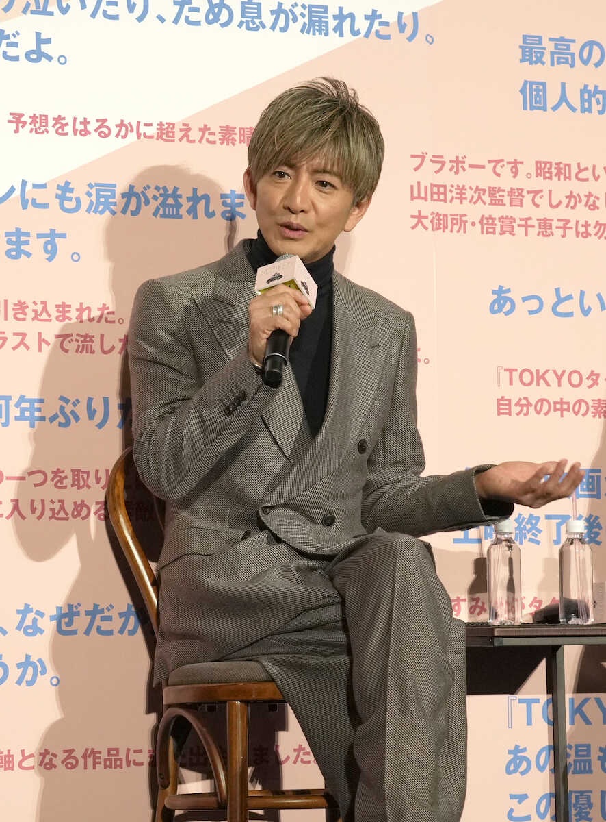 俳優の木村拓哉が3日、都内で映画「TOKYOタクシー」(監督山田洋次)の大ヒット御礼舞台あいさつに出席した。