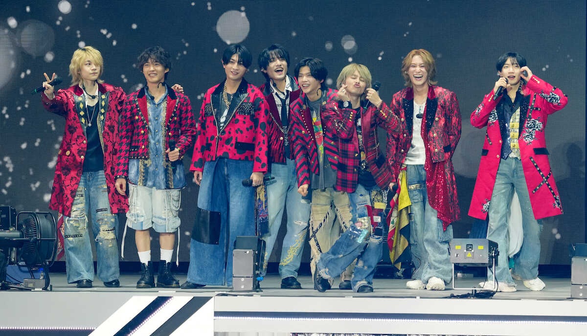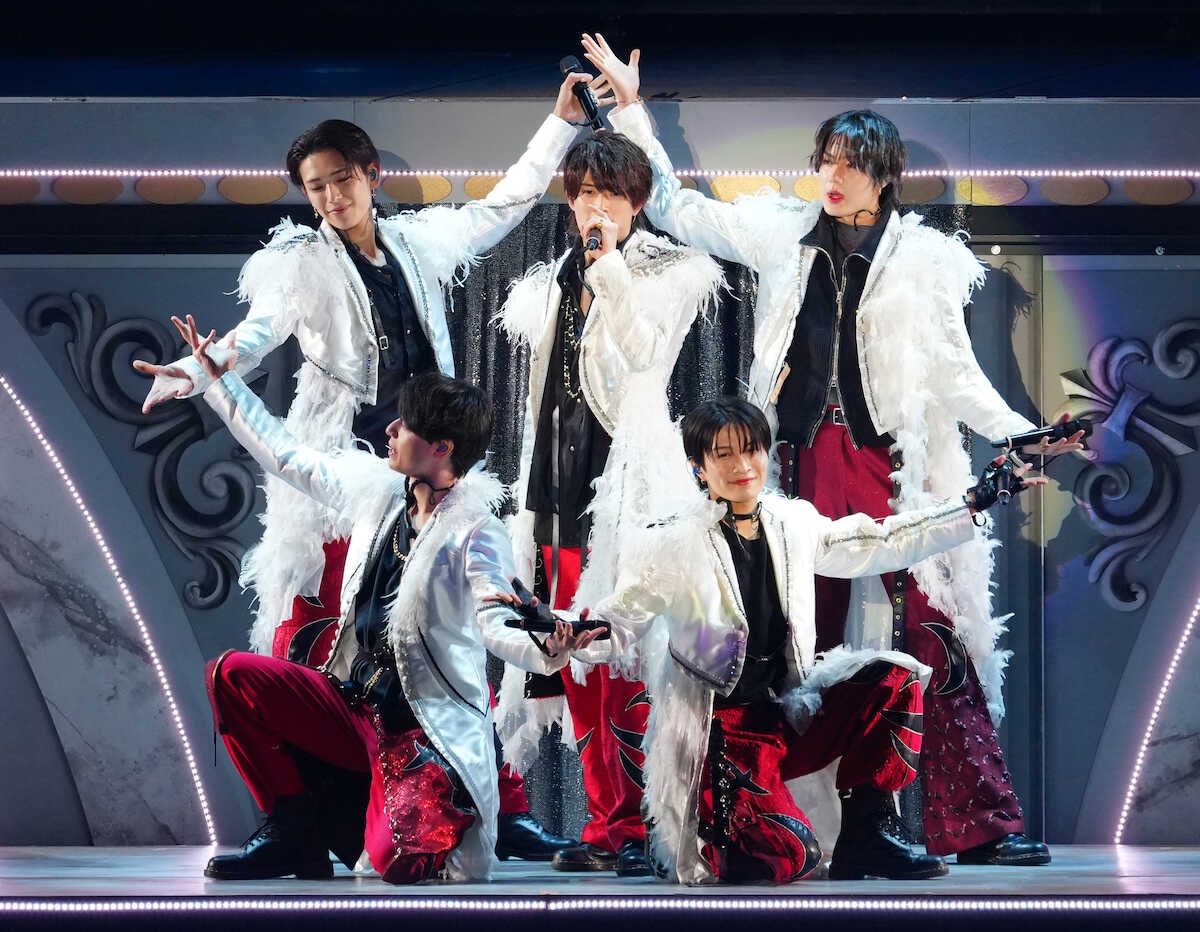 さらに少年隊「仮面舞踏会」やSMAP「青いイナズマ」など先輩のヒット曲をメドレーで歌唱し、事務所の歴史を〝継承〟した。