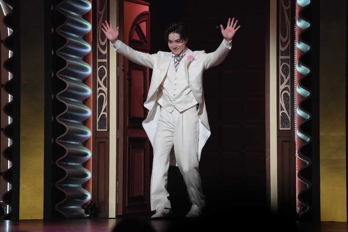 <ミュージカル ロマンティックス・アノニマス 公開ゲネプロ>声援に応える岩崎大昇(撮影・河野 光希)