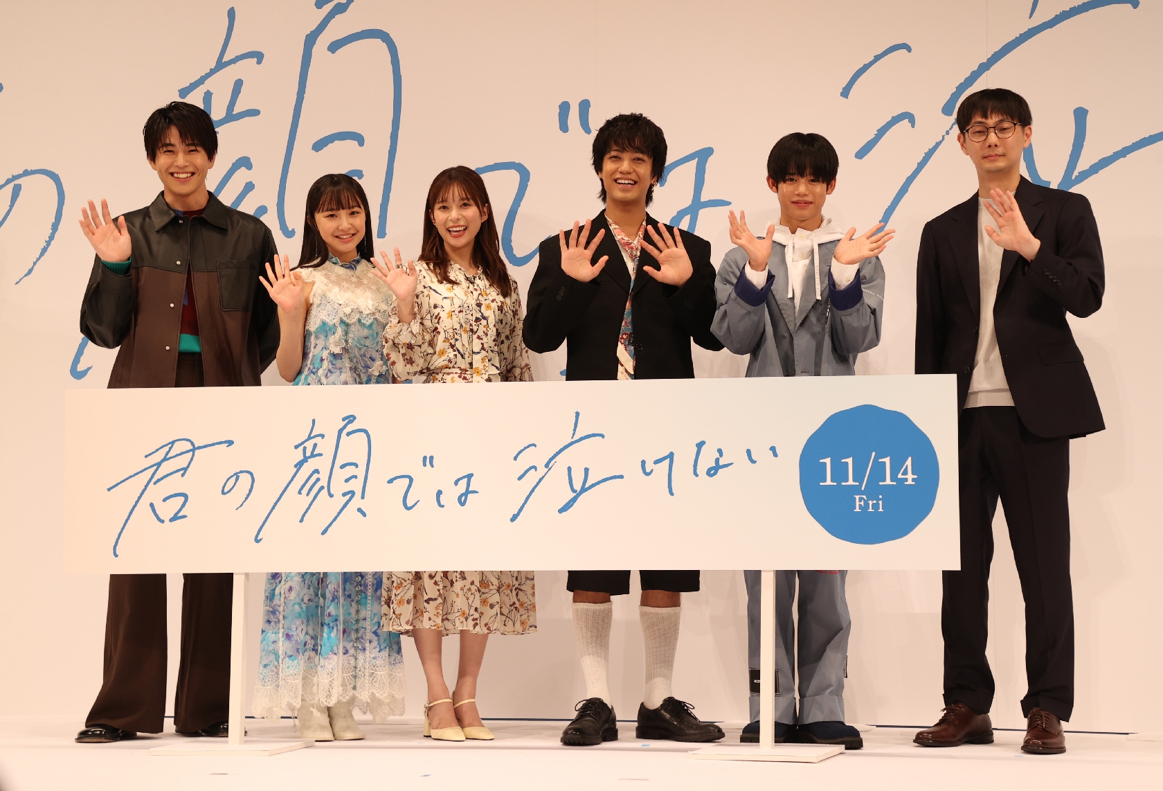 写真に納まる(左から)中沢元紀、西川愛莉、芳根京子、髙橋海人、武市尚士、坂下雄一郎監督(撮影・西海健太郎)