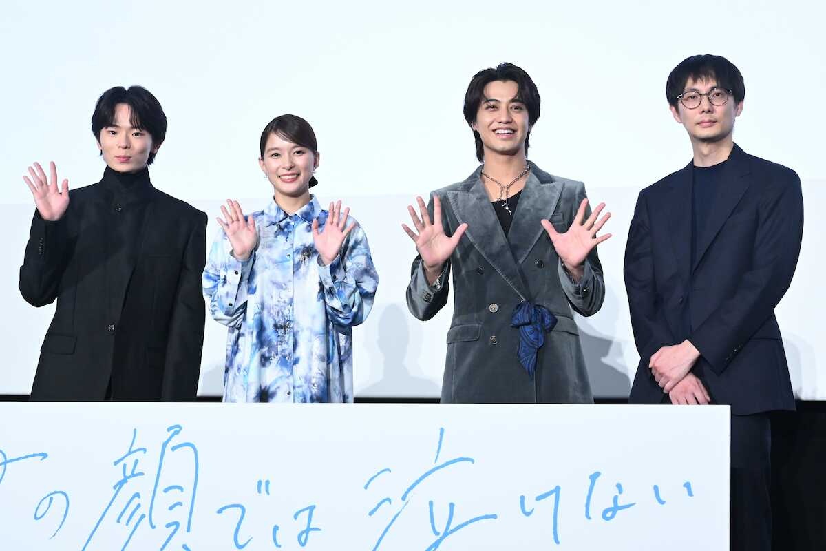 映画「君の顔では泣けない」公開記念舞台あいさつに出席した(左から)林裕太、芳根京子、King&Prince髙橋海人、坂下雄一郎監督(撮影・糸賀日向子)