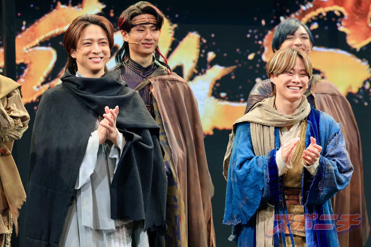 作品を引っ張るのは、対照的な2人の座長だ。寺西は「明日初日と言うことでとにかくワクワクしております」と落ち着いたあいさつ。一方の大橋は「どうも~!プリン食べすぎてお尻プリンプリン!」とおなじみの自己紹介を披露。「こけら落としという言葉も全然分からなくて調べたら、凄いことやって書いてあった」と天然発言で、キャスト陣からツッコミを受けるなど、ムードメーカーぶりを見せた。