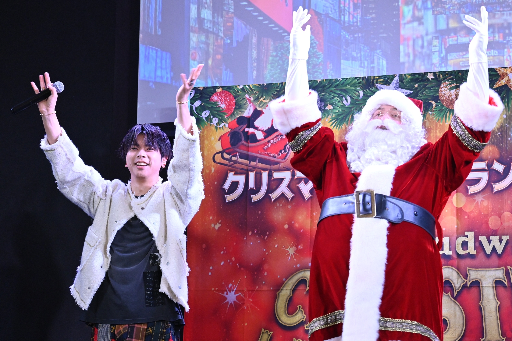 クリスマスショー「ブロードウェイ クリスマス・ワンダーランド」発表会で踊る増田貴久とサンタクロース(撮影・糸賀日向子)