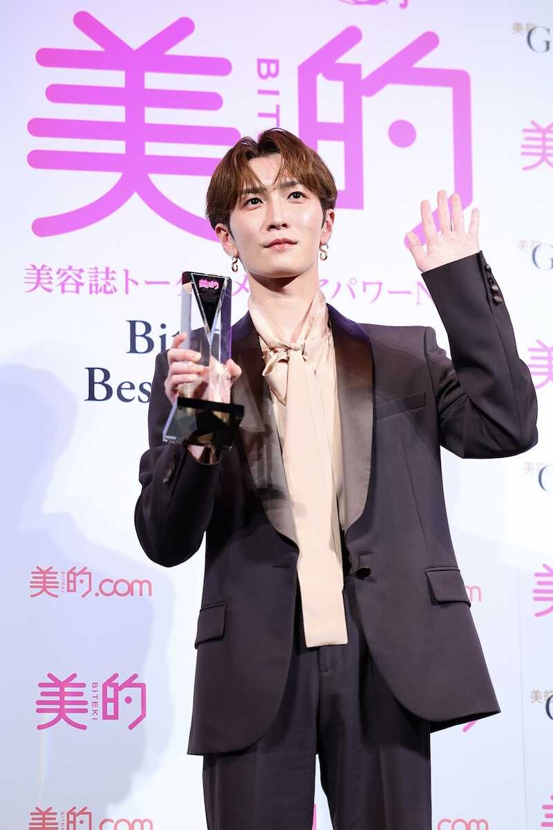 読者投票で選ばれる「美的ベストビューティーマン」を受賞。3度目の受賞となり、初の殿堂入りとなった。「非常にこの肩書きはデカいと思います。めちゃくちゃうれしいですし、殿堂入りというのは継続していただかないといただけない称号だと思う」と喜んだ。
