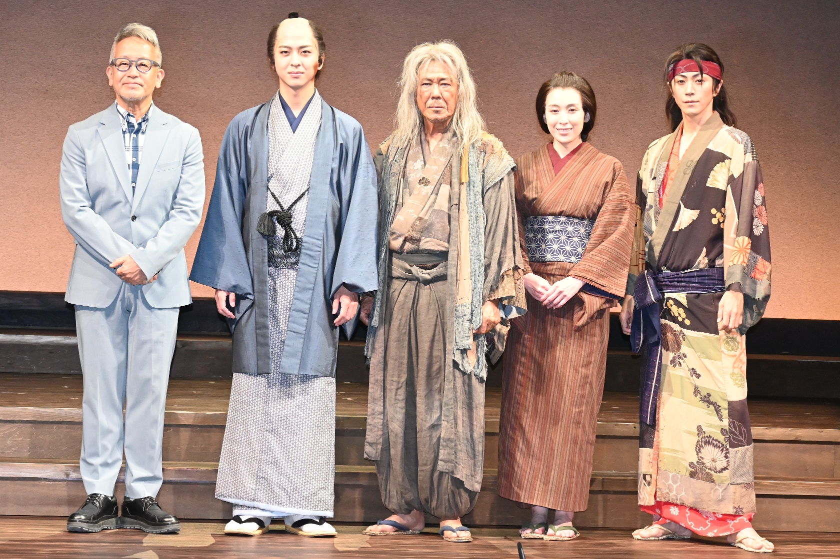 舞台「『新 画狂人北斎』―2025―」初日を迎えた(左から)宮本亞門氏、寺西拓人、西岡徳馬、雛形あきこ、廣瀬智紀(撮影・糸賀日向子)