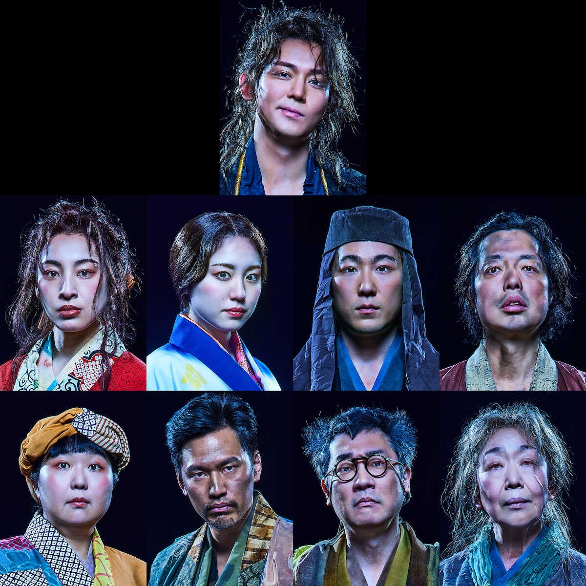 舞台「うま-馬に乗ってこの世の外へ-」に出演する(上段)小瀧望、(中段左から)音月桂、加藤梨里香、大鶴佐助、小松利昌、(下段同)小林きな子、小柳心、安井順平、梅沢昌代