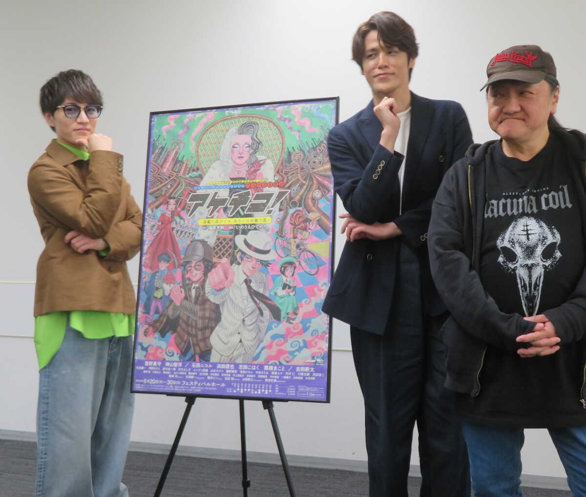 劇団☆新感線「アケチコ!」への意気込みを語る(左から)神山智洋、宮野真守と演出のいのうえひでのり氏