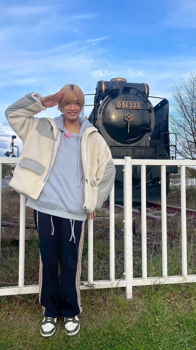 HBCテレビ「今日ドキッ!」の人気企画「ベタな旅人 トラベター」で白老を旅するIMP.の佐藤新(C)HBCテレビ「今日ドキッ!」