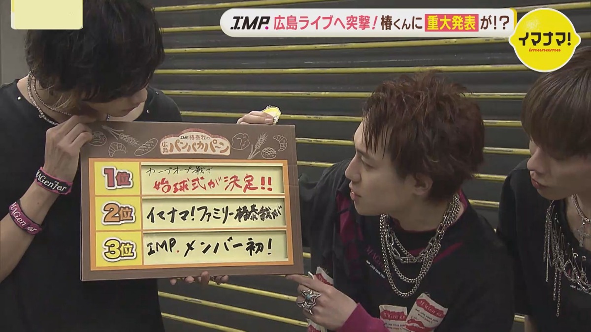 IMP.の椿泰我が出演するRCCテレビ「イマナマ!」の人気コーナー「IMP.椿泰我の広島パンパカパーン」の第62回が放送され、広島グリーンアリーナで開催された全国ツアー広島公演(2月5、6日)の熱狂とともに、驚きのニュースが届けられた。