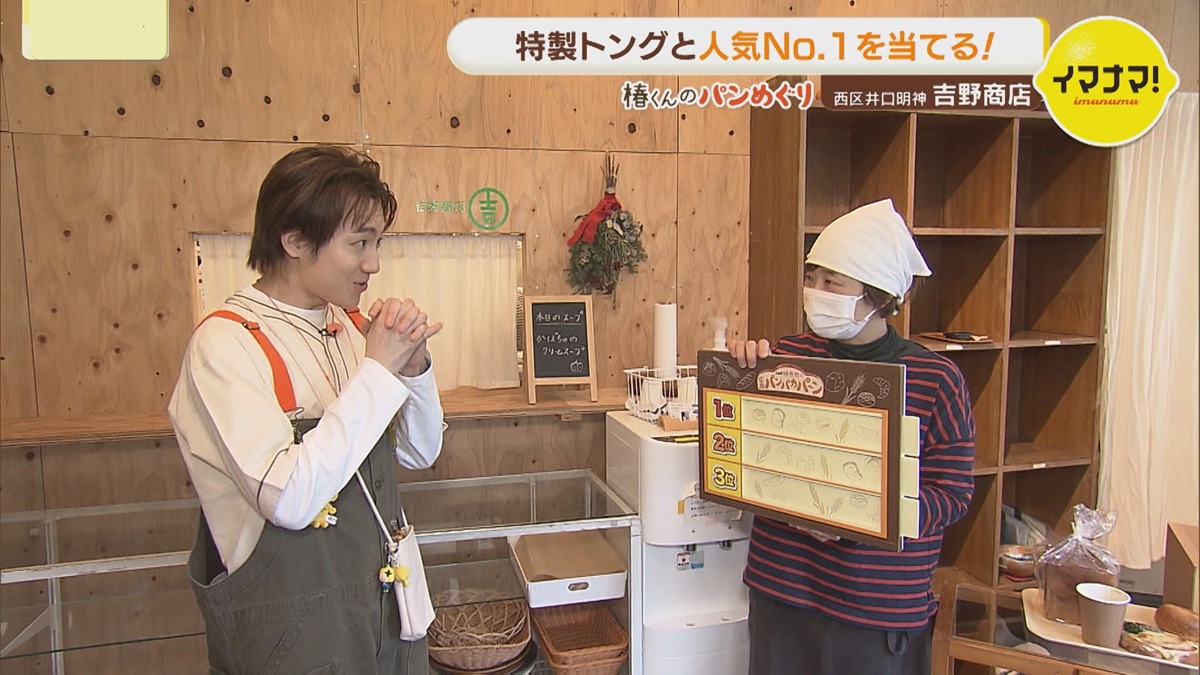 また、今回のロケでは広島市西区にあるパン店「吉野商店」を訪問。「毎日食べても飽きないパン」を掲げる同店で、椿は恒例の人気No.1当てクイズに挑戦した。