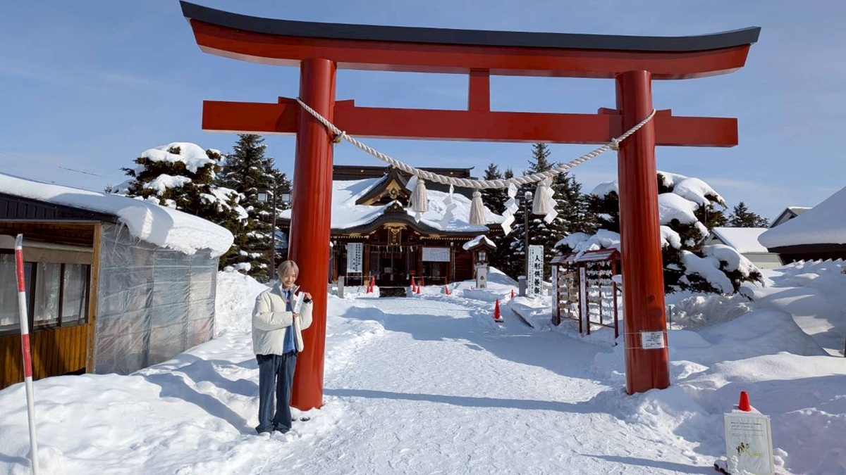 続いて向かったのは、SNSでも話題のパワースポット「美瑛神社」。社殿の装飾に隠された「ハートマーク」を見つけると縁結びにご利益があるという。参拝後には、ご当地おみくじ「とうもろこしみくじ」に挑戦。七輪で焼かれたおみくじをトングで取るというユニークなスタイルで引き当てると、なんと結果は「大吉」。「オーマイガー!大吉です!」と満面の笑みを見せ「なんまらうまくいってるっしょ」「思ったとおりに進むんでないかい」とキュートな北海道弁で読み上げ、喜びを爆発させた。