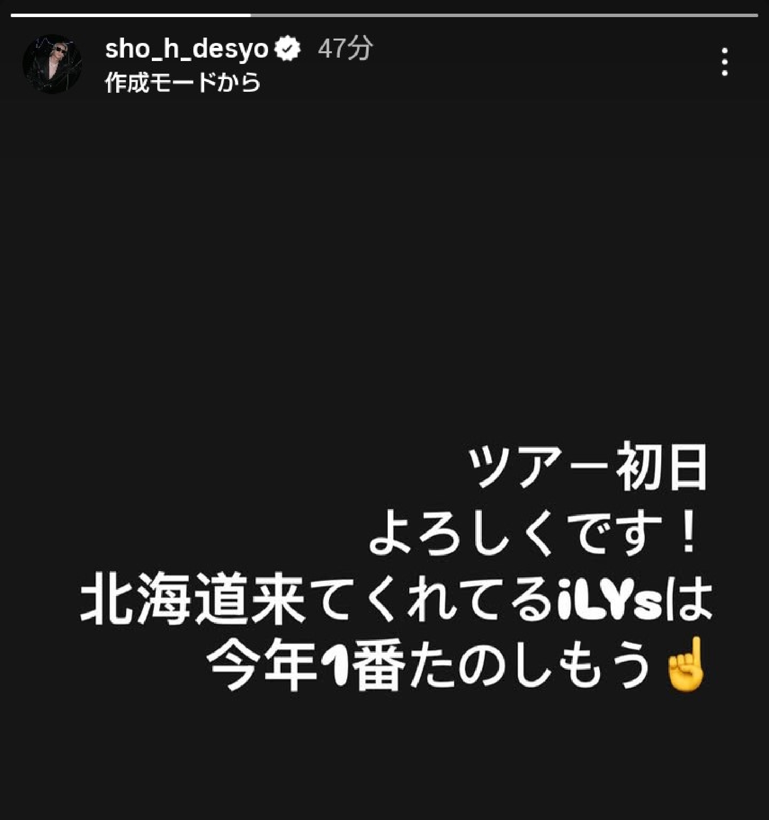 Number_i 平野紫耀、神宮寺勇太も続いた!岸優太の後にツアー開幕直前「ぶちあげ」「北海道来てくれてるiLYsは今年1番楽しもう」