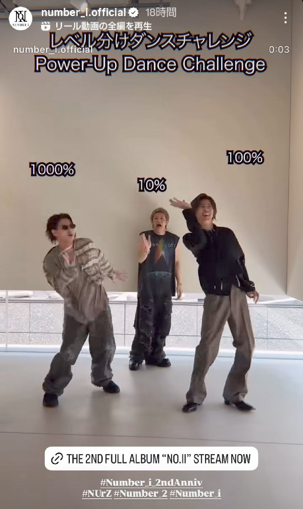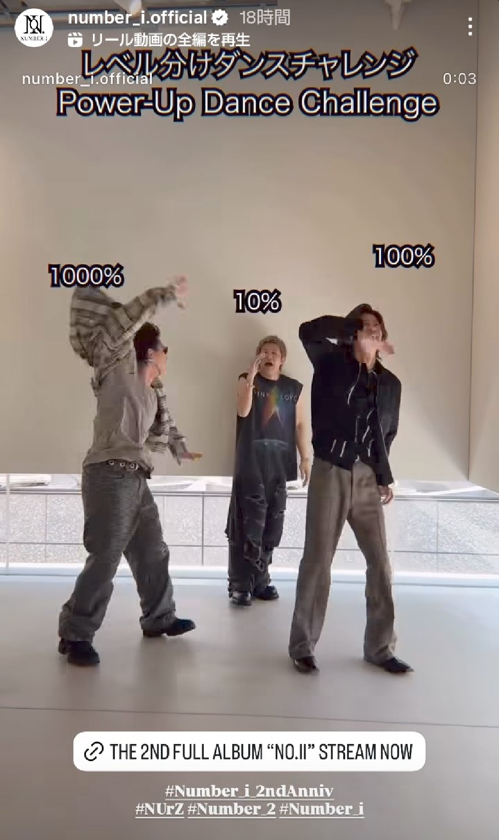 Number_iのスタッフが15日、インスタグラムのストーリーズを更新。メンバー3人のダンス動画を公開した。