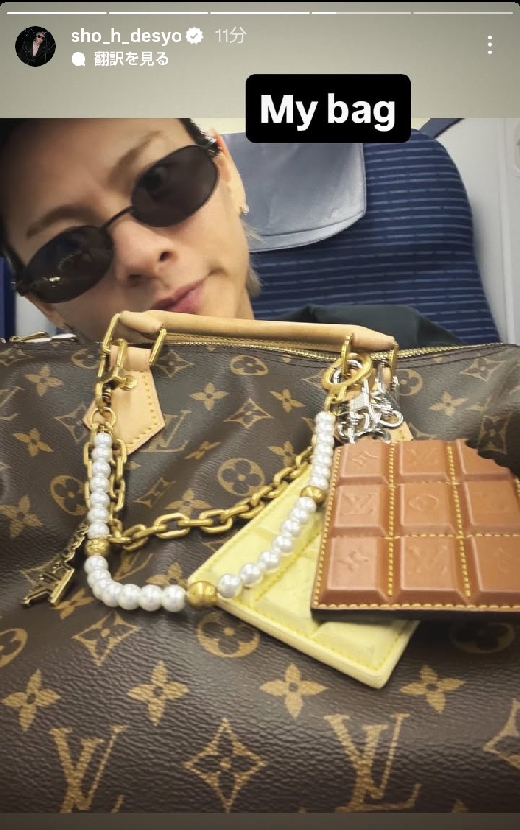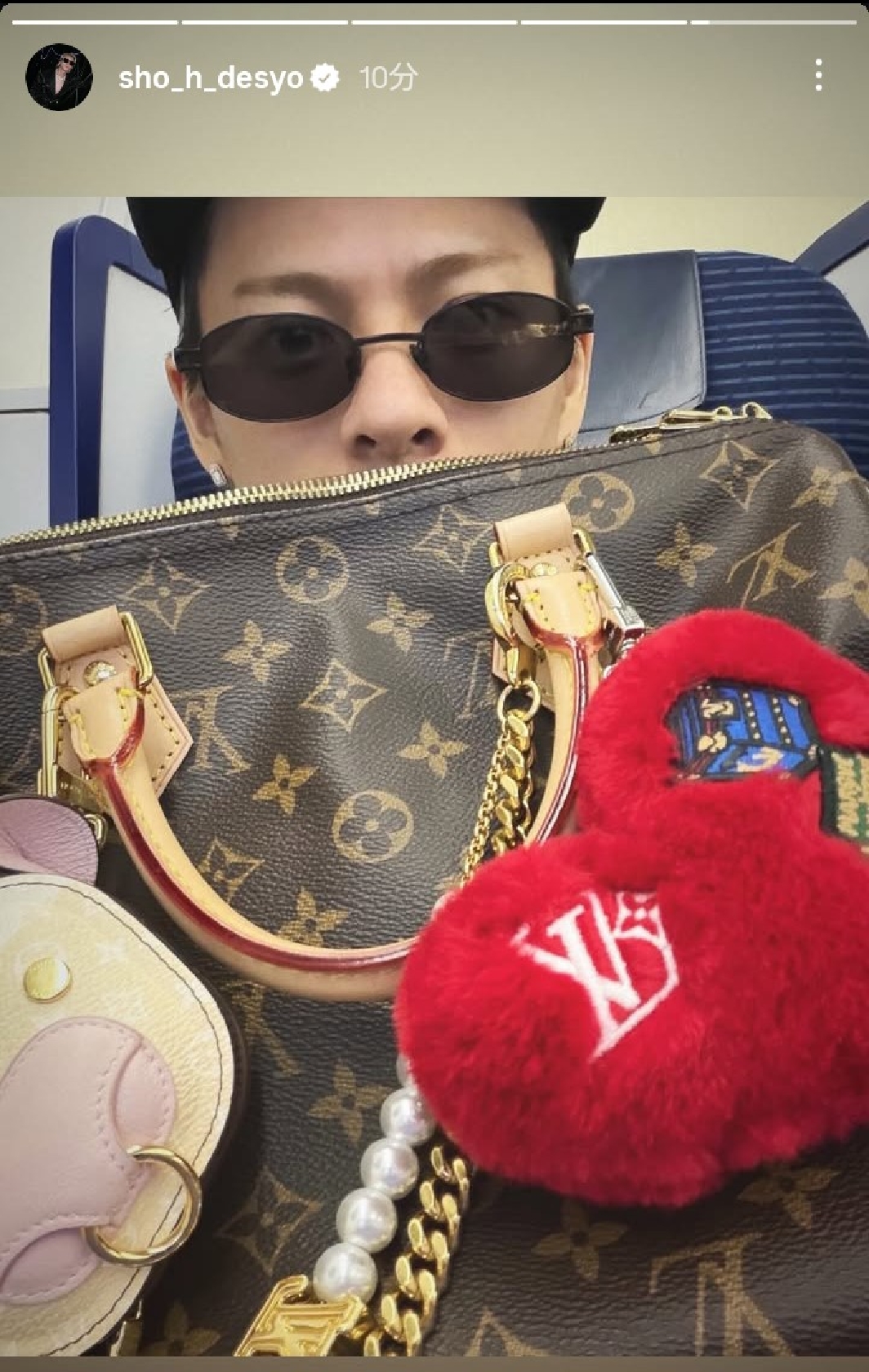 また、ストーリーズでは航空機のシートでくつろいでいる動画や写真もアップ。こちらでも「My bag」と書き込んで、普段愛用するルイ・ヴィトンのバッグとアクセサリーをセットで紹介した。
