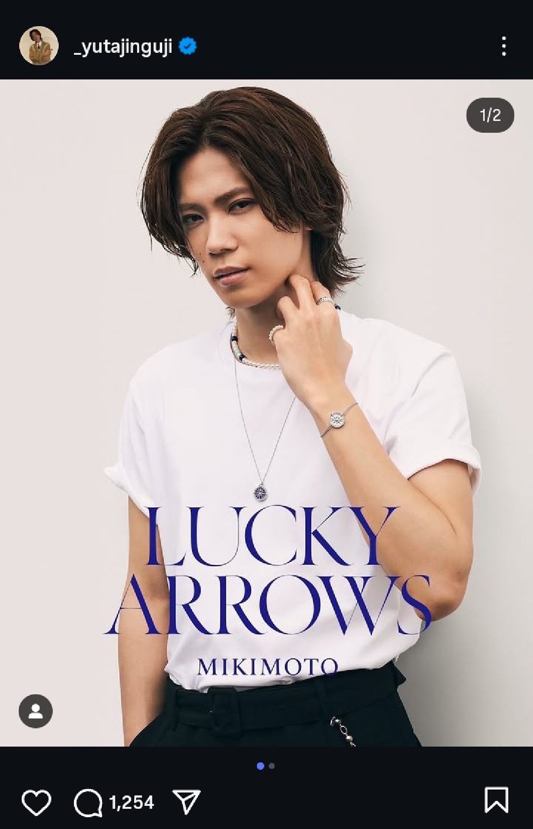 Number_iの神宮寺勇太が25日、インスタグラムを更新。パートナーシップ契約を結ぶ宝飾品ブランド「ミキモト」の新作アピールショットを公開した。