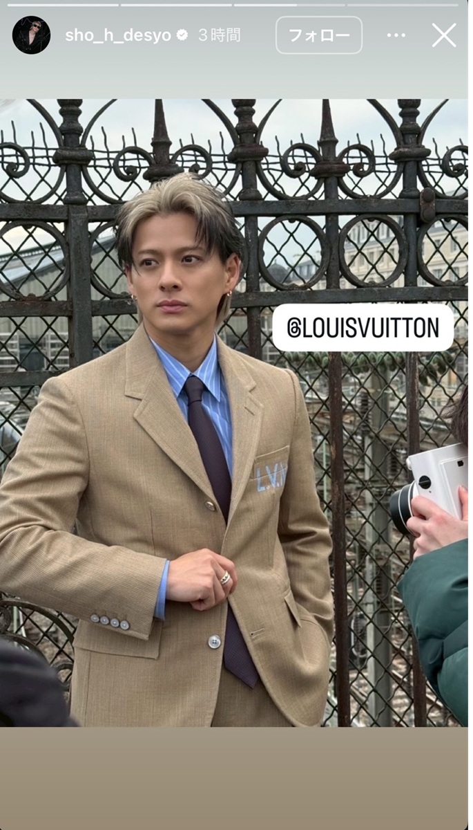 平野は21日、ストーリーズに「going to the LV SHOW」と題した写真など3枚を投稿。「2026秋冬メンズコレクション」のショーに向かうため、ヴィトンのベージュのスーツにネクタイ、ワイシャツという気品あふれるスタイルで、バッグを手にパリの街を歩く姿を披露した。