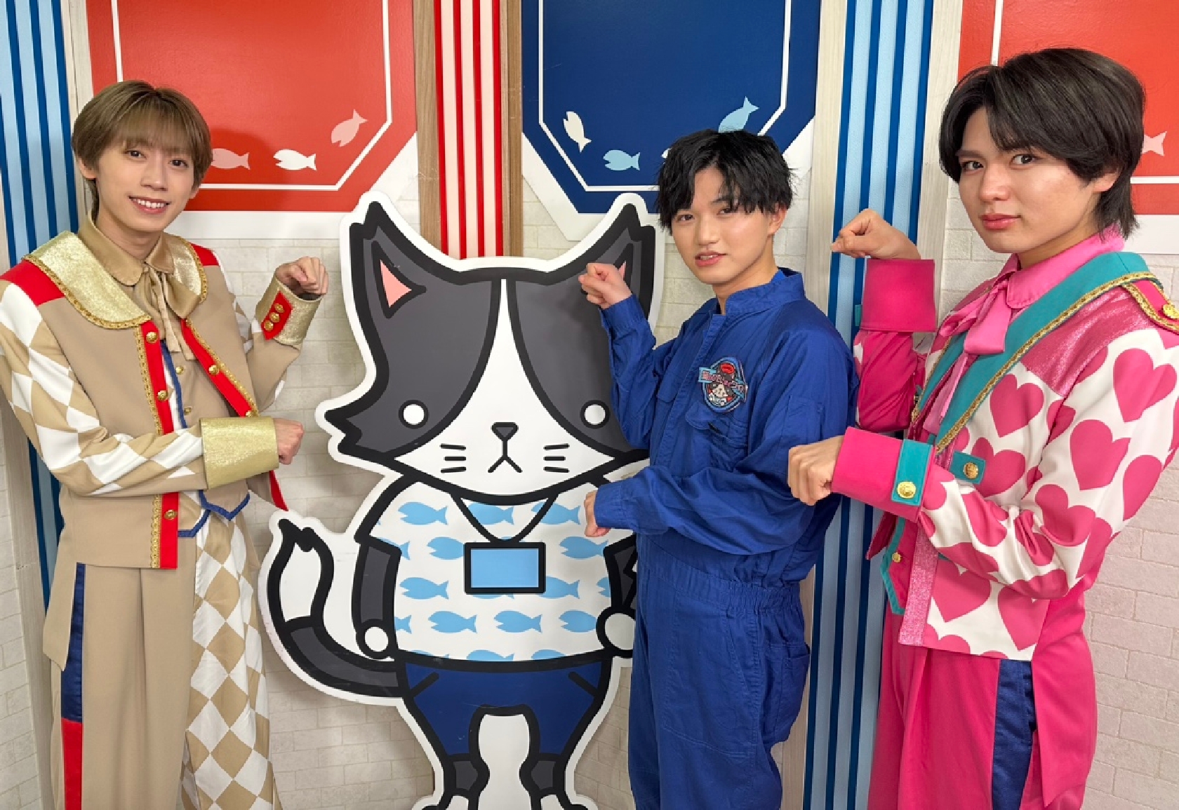 ことし3月、田倉(中央)がレギュラー出演中の「猫のひたいほどワイド」で、阿部(左)と松本と共にメジャーデビューを報告した