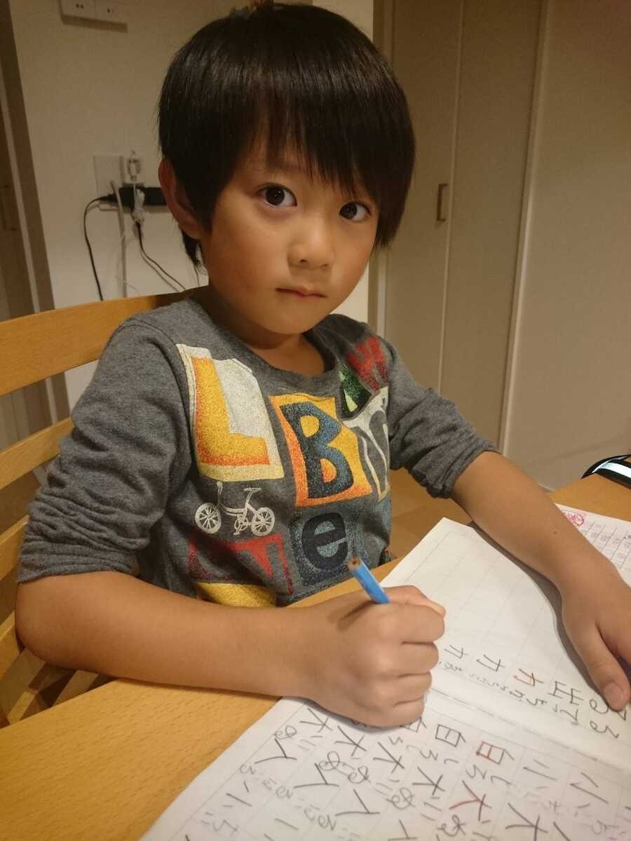 漢字の書き取りの真っ最中。小学生時代の河合彪雅