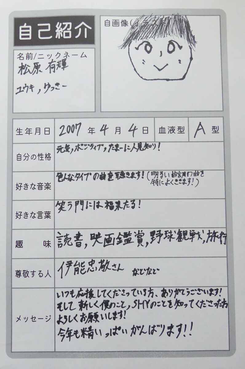 ◇松原有輝(まつばら・ゆうき) 2007(平19)年4月4日、愛知県出身。168センチ、A型。趣味・特技:雑学、卓球。メンバーカラーはシャイピンク。