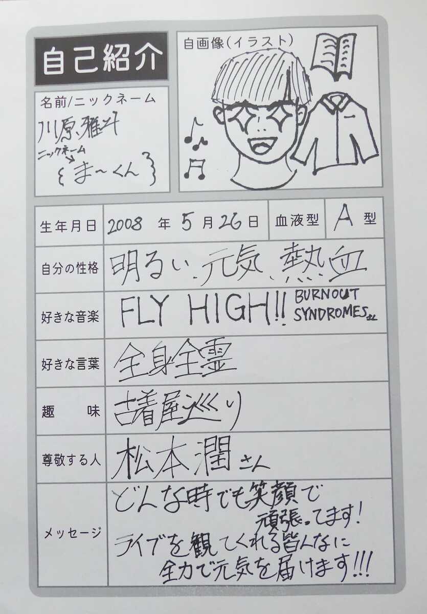 ◇川原雅斗(かわはら・まさと)2008(平20)年5月26日、長崎県出身。165センチ、A型。趣味・特技:ダンス、空手。メンバーカラーはシャイホワイト。