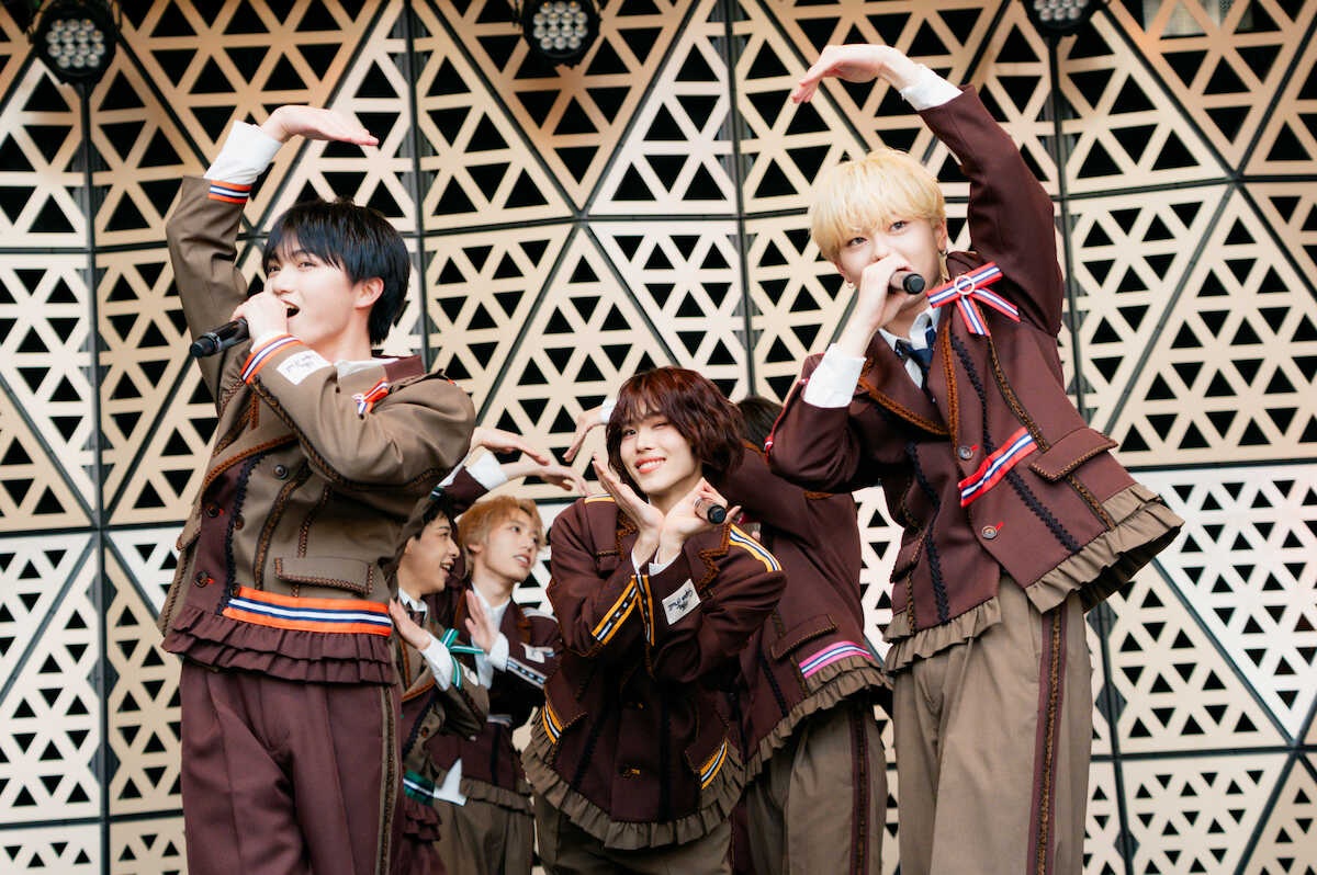 この日は新曲「恋はメリーゴーランド」に合わせ新衣装で登場。「こんにちは!皆さん今日は最後まで楽しんでいきましょう!」と黒色からミルクティーベージュに髪色を変えた鈴木志音を筆頭に7人が姿を見せると、会場から歓声と共にどよめきが。ピンクヘアがトレードマークだった松本勇輝は黒髪に変わっているなど、“初”づくしで集まったファンを驚かせていた。